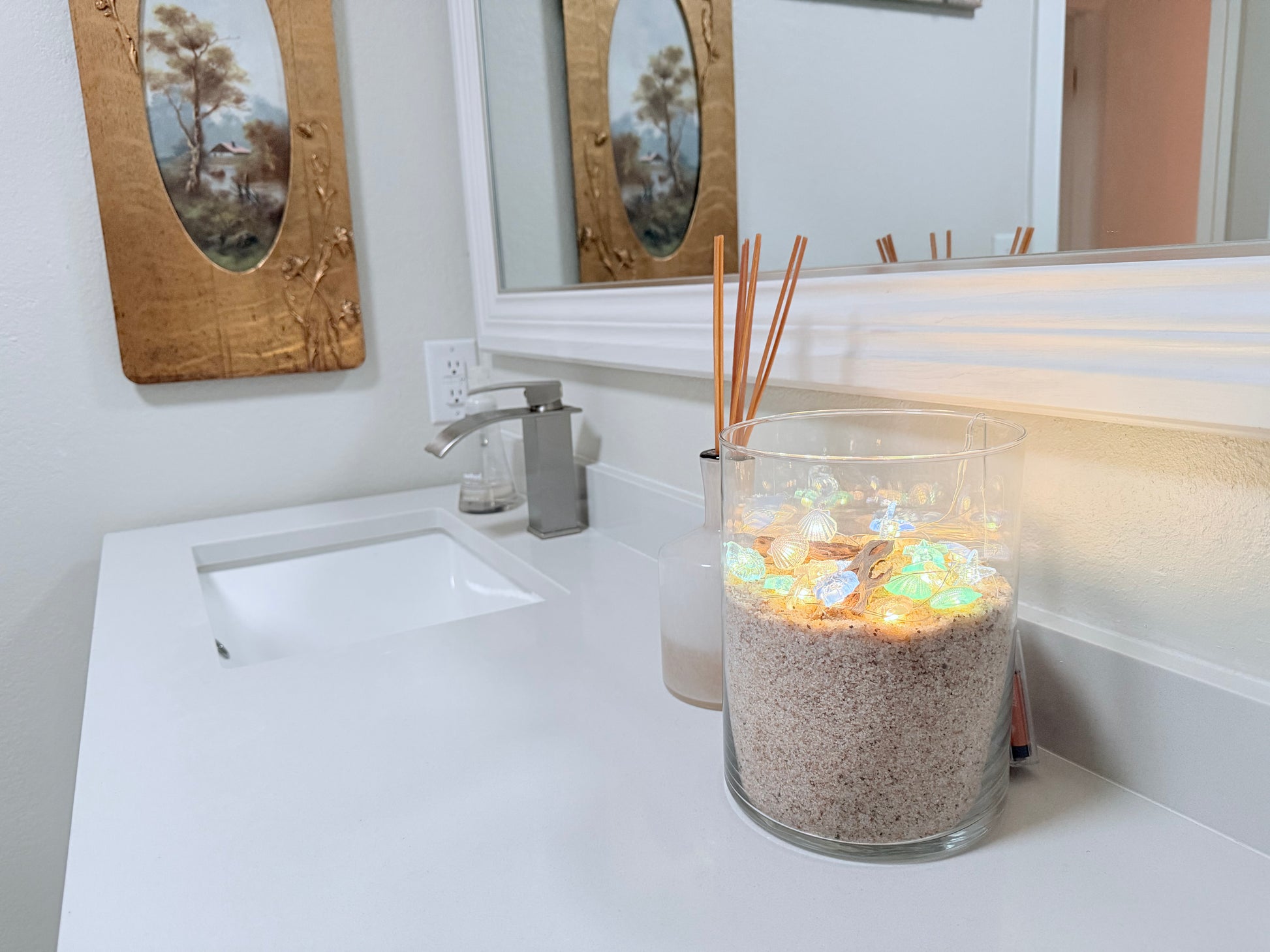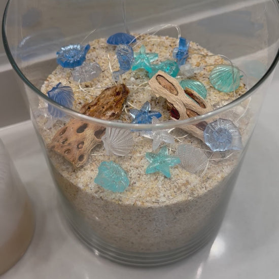 bring the relaxed glamour of the seashore right to your space. drape them over your headboard, create a bathroom centerpiece, or place them next to the souvenirs. stop wishing for a beach getaway and start lighting up your space.